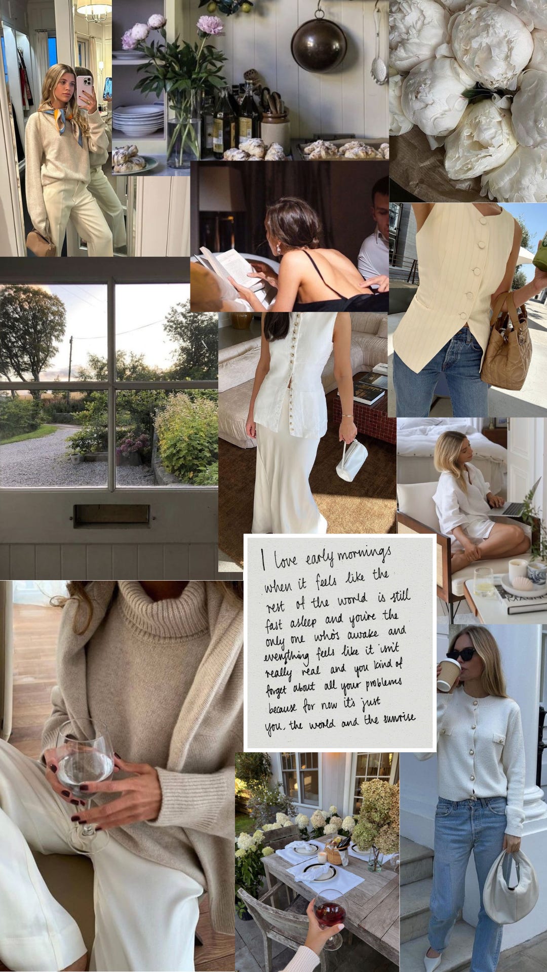 A woman that enjoys fresh flowers, long walks, afternoons reading books and magazines, she spends her time creating a beautiful home and cooking. Whilst wearing beautiful linens, denim and cashmere. She enjoys creating new recipes, the small luxuries like a warm summer evening. She practices elevating her everyday life and romanticises the mundane.